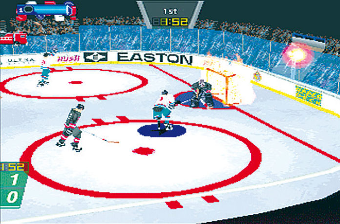 Midways Eishockey-Spektakel hebt sich durch seinen überzogenen Arcade-Modus von der Konkurrenz ab. Die „Extra“-Taste in Kombination mit dem Bodycheck-Knopf entlockt den Cracks knallharte Körperkontakte: Gegnerische Spieler fliegen in hohem Bogen durch die Luft und bleiben benommen auf dem Eis liegen. In Verbindung mit dem Schuß-Button feuern die Stürmer den Puck mit solcher Wucht ins Netz, daß das Tor in Flammen aufgeht. Drückt Ihr nur die „Extra“-Taste, legt Euer Spieler einen Zahn zu und läßt die gegnerische Verteidigung machtlos hinter sich. Solch spektakuläre Aktionen könnt Ihr aber nicht beliebig oft einsetzen: Wurde ein Special ausgeführt, verschnauft Euer Spieler einige Sekunden, bis er zum nächsten Super-Move bereit ist.