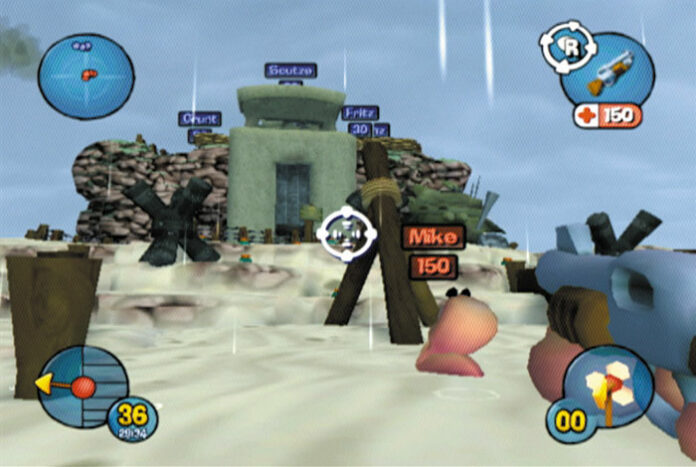 Vor zehn Jahren verkaufte der englische Entwickler Team 17 das erste Worms für Heimcomputer und Konsolen, eine Niedlichvariante der klassischen ”Artillerieschlacht”-Programme: Vier Spieler lenkten abwechselnd aus der Seitenperspektive ihren Vierertrupp niedlicher Wurmsöldner, die sich mit Bazooka, Handgranate und Rakete gegenseitig aus der Arena semmeln – wer übrig bleibt, gewinnt. Dutzende Neuauflagen später kommt jetzt endlich die 3D-Version: Während PC-Zocker auch online spielen, treten auf Konsole bis zu vier Freunde auf einem Bildschirm zum Shootout an.