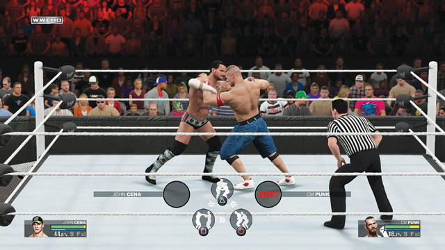 Neu ist die Karriere, die Ihr mit Eurem selbstgemachten Athleten in der Aufbauliga NXT beginnt. Von dort kämpft Ihr Euch durch diverse Fehden bis in die großen Pay-Per-Views vor – inklusive Verbesserungen an Moves und Fähigkeiten. Auf PS3 und Xbox 360 wird dieser Modus durch ”Who got NXT” ersetzt: Hier bestreitet Ihr mit festgelegten Superstars verschiedene Matches. Überall dabei ist ”2K Showcase”: Spielt die Fehden CM Punk gegen John Cena sowie Shawn Michaels gegen Triple H nach. Erfüllt Ihr dabei kleine Herausforderungen, werden neue Wrestler, Arenen und Kleidungsstücke freigeschaltet.