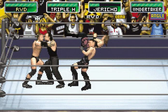16 kräftige WWE-Wrestler laden zum Duell, Tag-Team-Match und Battle-Royale: Ihr spielt die Kämpfe entweder einzeln oder im umfangreichen Story-Modus. Was beim Wrestling zählt, ist natürlich die Action im Ring: Im Gegensatz zu anderen 2D-Keilereien setzt Entwickler Natsume die Figuren aus Körper-, Arm- und Bein-Sprites zusammen – diese Kombination ermöglicht vielfältigere Attacken als bei Wrestlern, die in einem Stück gepixelt sind. Natürlich wirken Bodyslam und Backsupplex allerdings nicht, die Kämpfer bewegen sich eher wie Marionetten. Außerdem kann selbst Eure Oma schneller zuschlagen als die GBA-Catcher: Besonders beim Erklimmen des Ringpfostens agieren die Catcher träge, Highfly-Manöver gehen grundsätzlich in die Hose.
