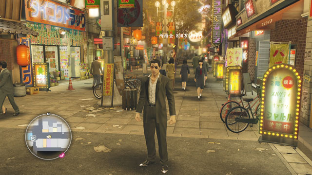 Abermals schlüpft Ihr in die Rolle des Kiryu Kazuma, allerdings in seinen jungen Jahren, noch bevor er in den Knast geht und vom Tojo-Klan ausgestoßen wird. Im Jahr 1988 erlebt Japan ein Zeitalter des Wirtschaftsbooms und des Überflusses. Ein Abbild dessen erhaltet Ihr in den neondurchfluteten Straßen des Stammszenarios Kamurocho. Dieser altbekannte Stadtteil ist wieder frei erkundbar und steckt voller Intrige, Nebenaufträgen und Straßenschläger. Schon zu Beginn tappt der geldeintreibende Unterwelt-Held in eine Falle, denn einer seiner Schuldner wird tot aufgefunden und Kiryu bekommt die Schuld in die Schuhe geschoben. Umso vertrackter, da es Klans auf die Grundstücke rund um den Tatort abgesehen haben. Wie gewohnt entspinnt sich eine komplexe Mafia-Geschichte mit ausladenden Dialogsequenzen, die gute Japanisch-Kenntnisse erfordern. Spielerisch verlangt der Hauptstrang meist nur nach der Suche nach dem nächsten Gesprächspartner, manchmal aber auch nach Einfallsreichtum. Einmal sollt Ihr nämlich eine Verkleidung organisieren, um Euch einzuschleichen. An anderer Stelle geleitet Ihr eine blinde Zeugin durch gefährliche Gassen.
