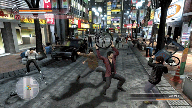 Da sich die Charaktere immer tiefer in den Angelegenheiten der Yakuza-Klans verstricken, sind handfeste Auseinandersetzungen unumgänglich. Die blutigen Faustkämpfe gegen meist mehrere Gegner erfordern wie gewohnt auch den Einsatz herumliegender Gegenstände wie Flaggenmaste oder Möbel. Gelungene Angriffe füllen die Heat-Leiste auf, dann packt Ihr besondere Kampfaktionen aus – vorausgesetzt die wurden bereits gelernt. Neben Erfahrungspunkten erhaltet Ihr auch ’Soul-Points’, die für neue Kampfattacken ausgegeben werden. Weitere Spezialtechniken lernt Ihr via Handy: Fotografiert zufällige (meist absurd witzige) Ereignisse in der Umgebung und lernt die passende Anwendung für den Kampf. Zudem dürfen aus Schrott und Elektronikteilen neue Waffen gebastelt werden.