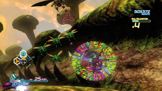 Im Reigen der Retro-Neuauflagen ist Yar’s Revenge ein ungewöhnlicher Kandidat, denn das Original mit einer Weltraumfliege als Spielfigur erschien 1982 für das altehrwürdige VCS und war das bestverkaufte Modul von Atari, das nicht auf einer Spielhallenvorlage basierte. Bis auf die Hintergrundstory und ein paar Mini-Anspielungen hat das neue Yar’s Revenge mit dem alten aber kaum noch etwas zu tun. Jetzt schwirrt Ihr mit einem humanoiden Anime-Mädel in Panzer Dragoon-Art auf vorgegebenen Pfaden durch 3D-Levels und nehmt stetig anflatterndes Feindvolk unter Zielkreuzbeschuss. Da Ihr Eure Heldin und den Marker unabhängig steuert und zwischen drei Schussarten (Laser, Kanone und Aufschaltraketen) wechselt, die gegen bestimmte Feindsorten wirken, ist für koordiniertes Vorgehen Übung nötig – dann macht sich die Ballerei ganz ordentlich. Die gelungene Optik bedient sich bei Vorlagen wie Elemental Gearbolt oder GunValkyrie, mit nur einer guten Stunde Spielzeit hapert es jedoch vor allem am Umfang.