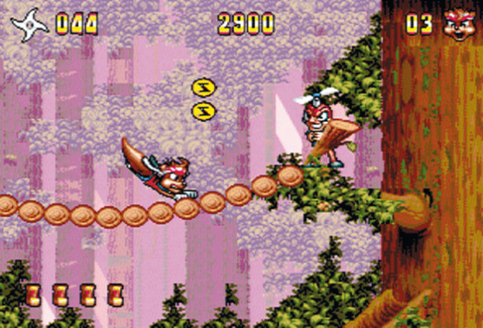 Im elitären Zirkel der Jump’n’Run-Helden herrscht Platzmangel: Neben Sunsofts Aero the Acrobat, der gerade sein zweites Bildschirmabenteuer absolviert, drängt der hausinterne Konkurrent Zero the Kamikaze Squirrel ins Rampenlicht. Doch welche Qualikationen kann der Neuankömmling vorweisen? Daß seine Plattform-Eskapaden vor scrollenden Szenarien stattfinden, überrascht heutzutage keinen mehr. Zero’s Bewegungstalent ist dagegen erstaunlich: Wenn seine normale Sprungkraft nicht ausreicht, kann er in der Luft zu einem Wirbelhüpfer ansetzen, oder er zischt wie ein Pfeil in die gewünschte Richtung – letzteres dient wahlweise als Fortbewegungsmittel und Angriffstechnik. Außerdem schliddert Zero am Boden entlang, wirft mit Shurikans um sich und wehrt sich mit Fußtritten gegen hautnahe Feinde.