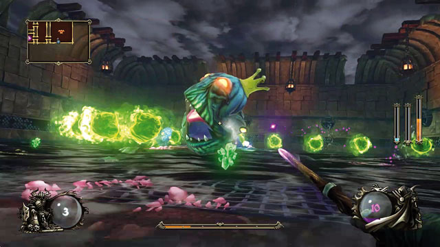 Harry Potter hat wohl einen schlechten Tag: Er nimmt seinen Zauberstab, betritt das Ziggurat (einen gestuften Tempel), ballert auf alles, was sich bewegt, kämpft sich durch eine Handvoll zufallsgenerierter Ebenen, stirbt und beginnt von vorn. So lässt sich der Spielablauf von Ziggurat zusammenfassen. Bei jedem Neustart (und Ihr erlebt unweigerlich sehr viele, wenn Ihr nicht auf der leichten Schwierigkeitsstufe spielt!) drückt Euch der Titel neben dem Erbsenpistolen-Zauberstab nach und nach andere magische Waffen in die Hand und schickt Euch auf die Jagd nach einem Boss, welcher das Tor zur nächsten Ebene schützt. Endgegner, Fallen, Räume und Fantasy-Feindaufkommen unterscheiden sich jedes Mal, vorbereiten könnt Ihr Euch also nicht. Betretet Ihr einen Raum, müsst Ihr alle darin befindlichen Gegner töten, erst dann geht es weiter. Manchmal warten aber auch nur eine Schriftrolle, Upgrade-Altäre oder der Schlüssel für den Bosskampf.