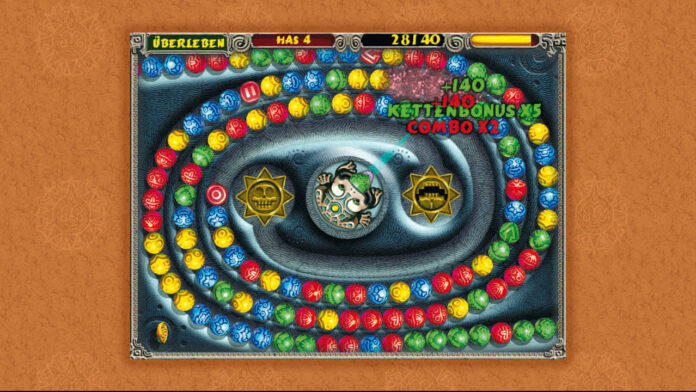 Auf einer Schiene rollen unaufhaltsam bunte Murmeln auf Euch zu, die Ihr loswerden solltet. Dazu schießt Ihr aus der Mitte eigene Klunker auf die Reihe – treffen mindestens drei gleiche zusammen, lösen sie sich auf, mit etwas Geschick erzeugt Ihr weitere Kettenreaktionen. Ein paar Extras sowie immer kniffliger gebaute Laufbahnen für die Bälle sorgen für Abwechslung.